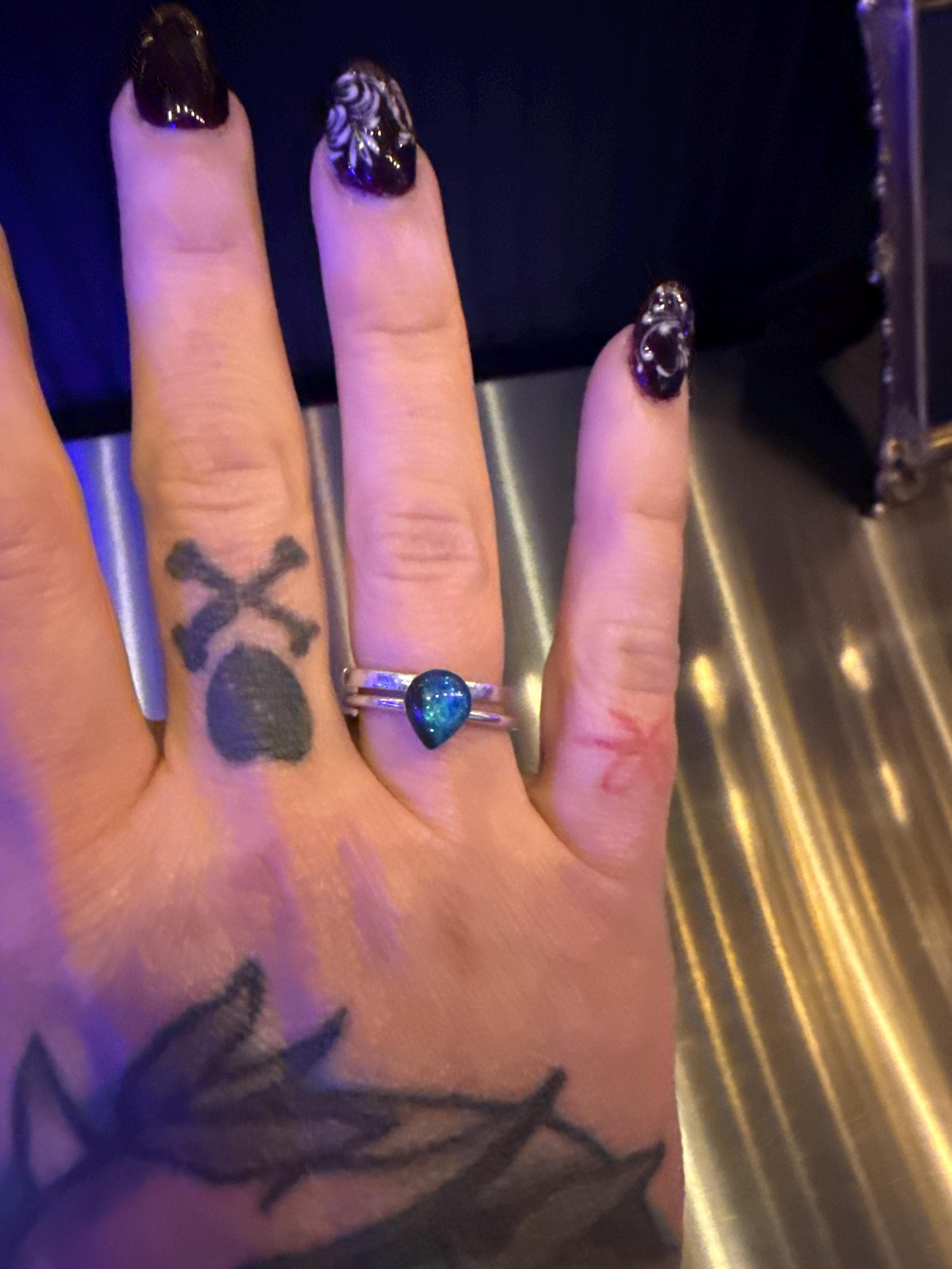 A black discoloration on your finger from a sterling silver ring is usually caused by a chemical reaction between the silver and sulfur compounds, like those found in your skin, sweat, cosmetics, or the environment, leading to the formation of silver sulfide.