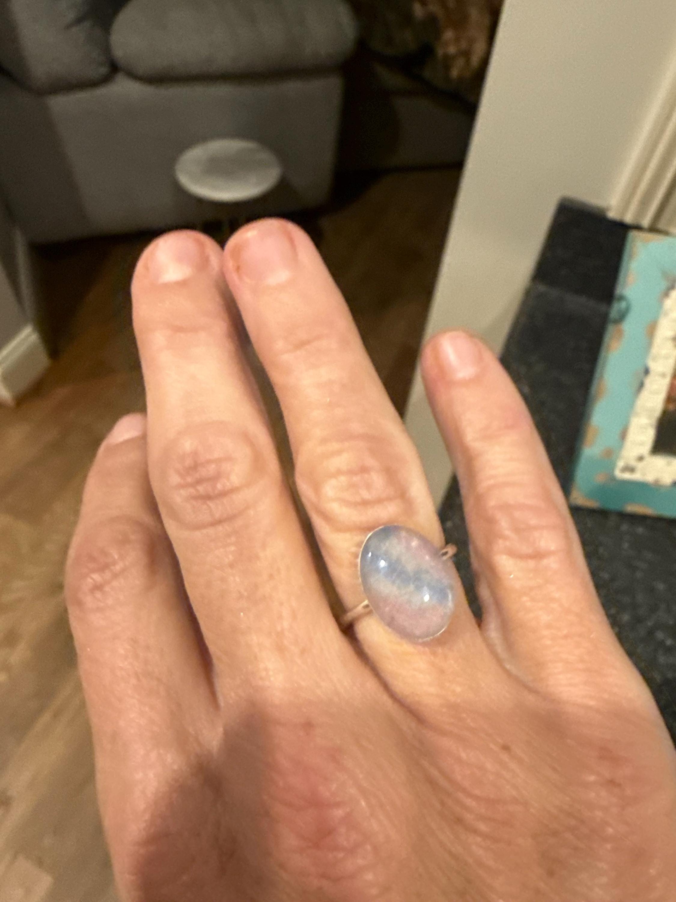This ring is made using all sterling silver or 14k Gold Filled metals. The band is made with a thick 14G wire and the stone is set in a 10-12mm or 8-6mm bezel.