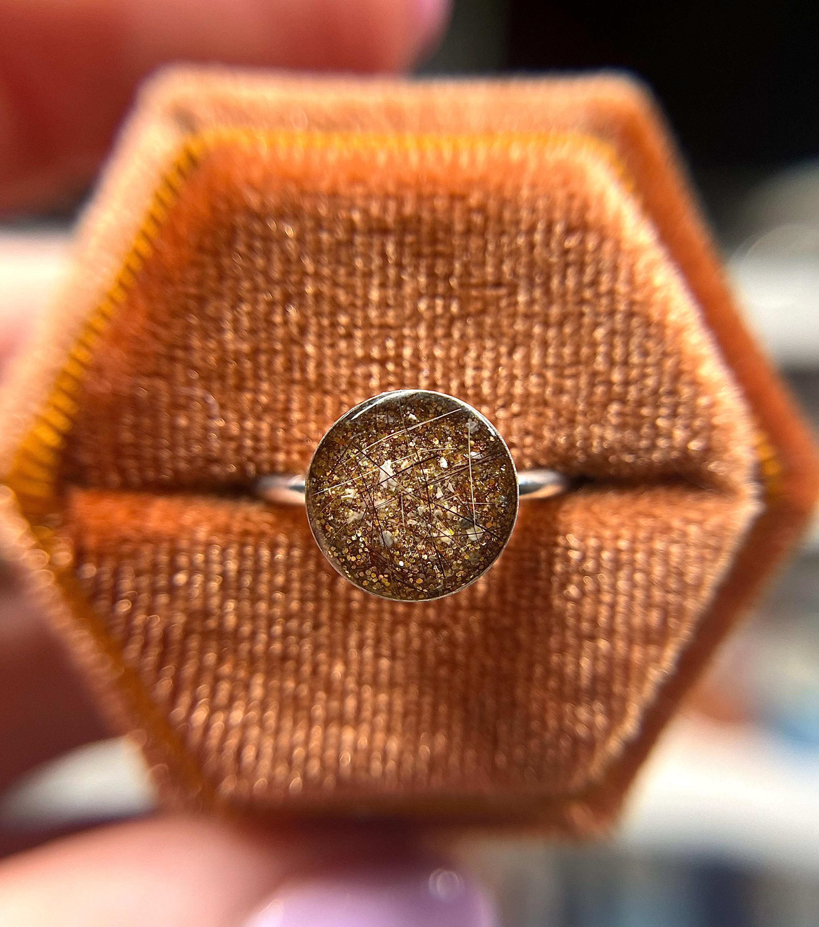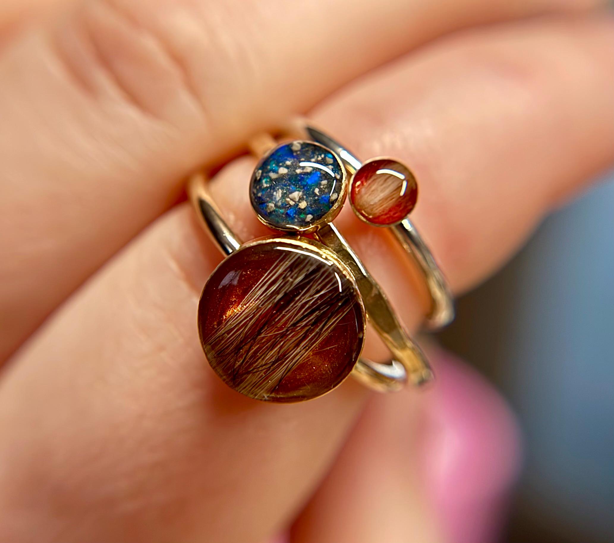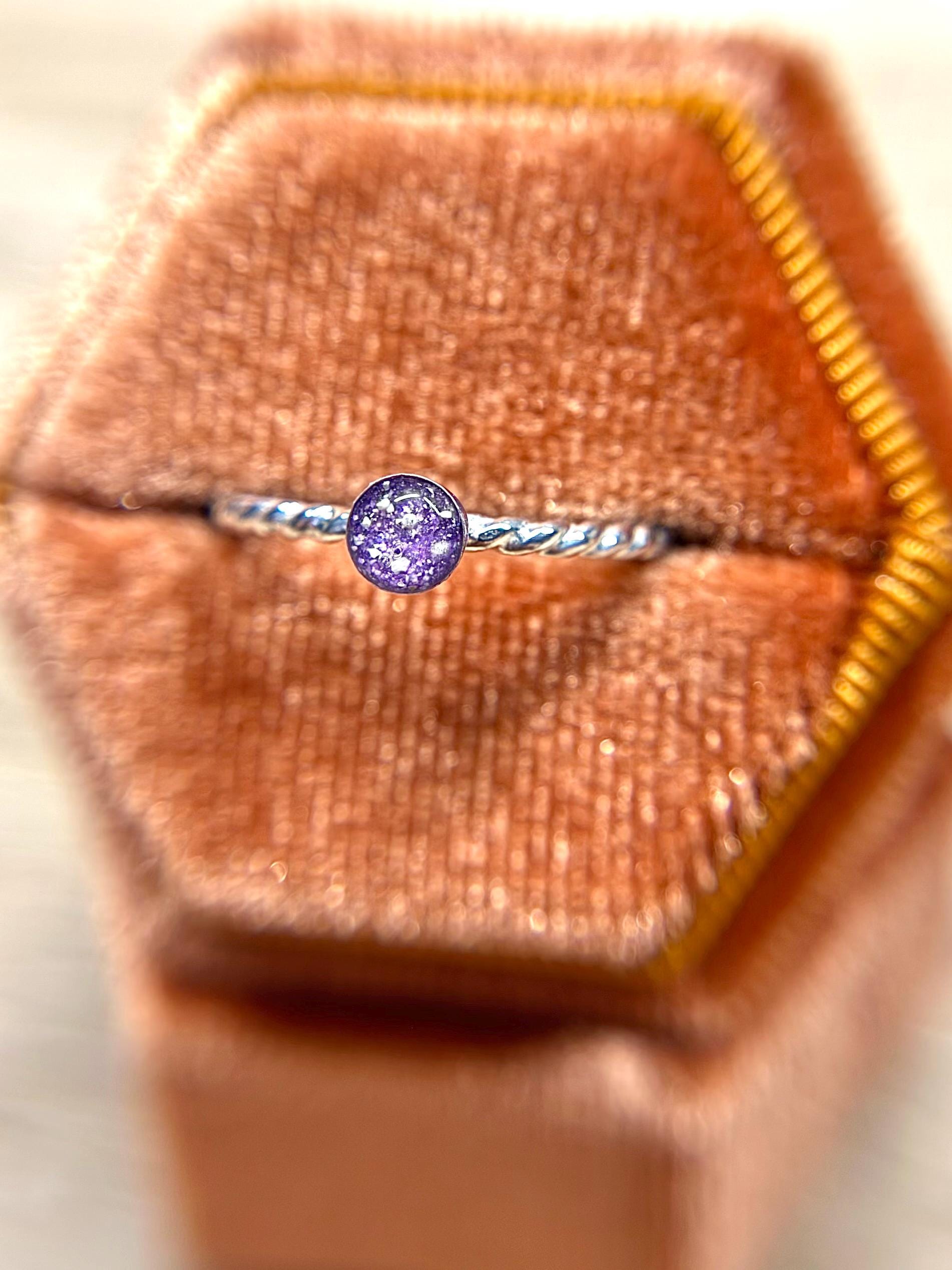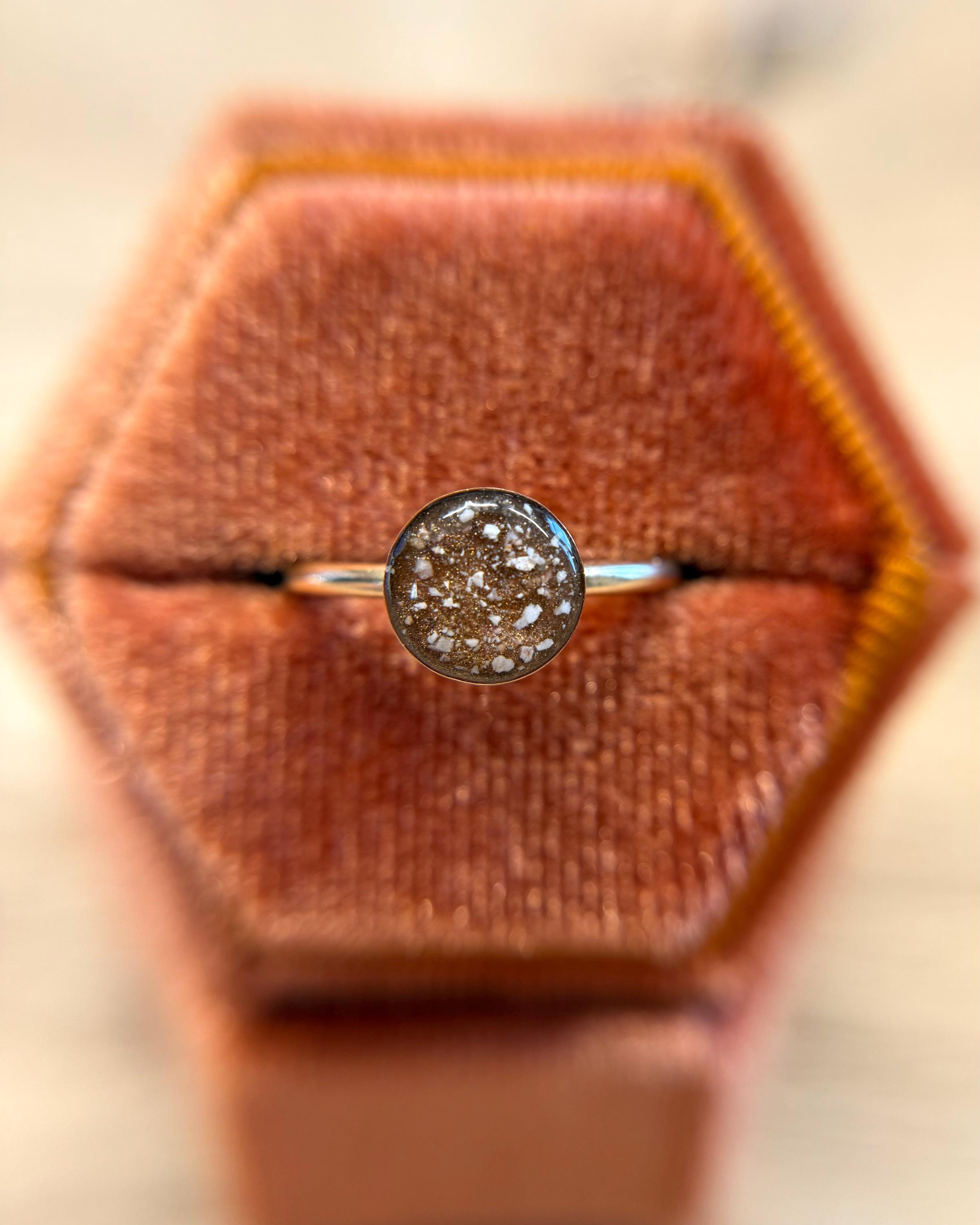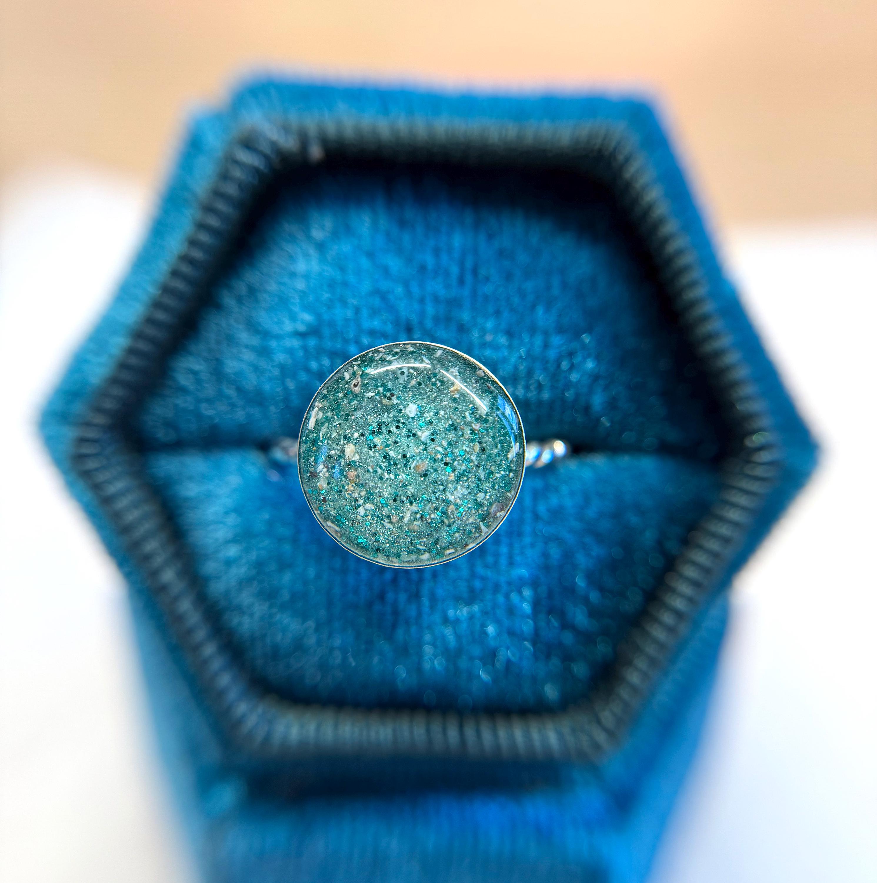 This handmade memorial ring is created using your pets ashes, fur, whiskers or other inclusions. Each piece is thoughtfully crafted with care, shaped slowly and intentionally, and made to be completely one of a kind. No two rings are ever the same — each one reflects the unique story and connection it’s meant to honor.