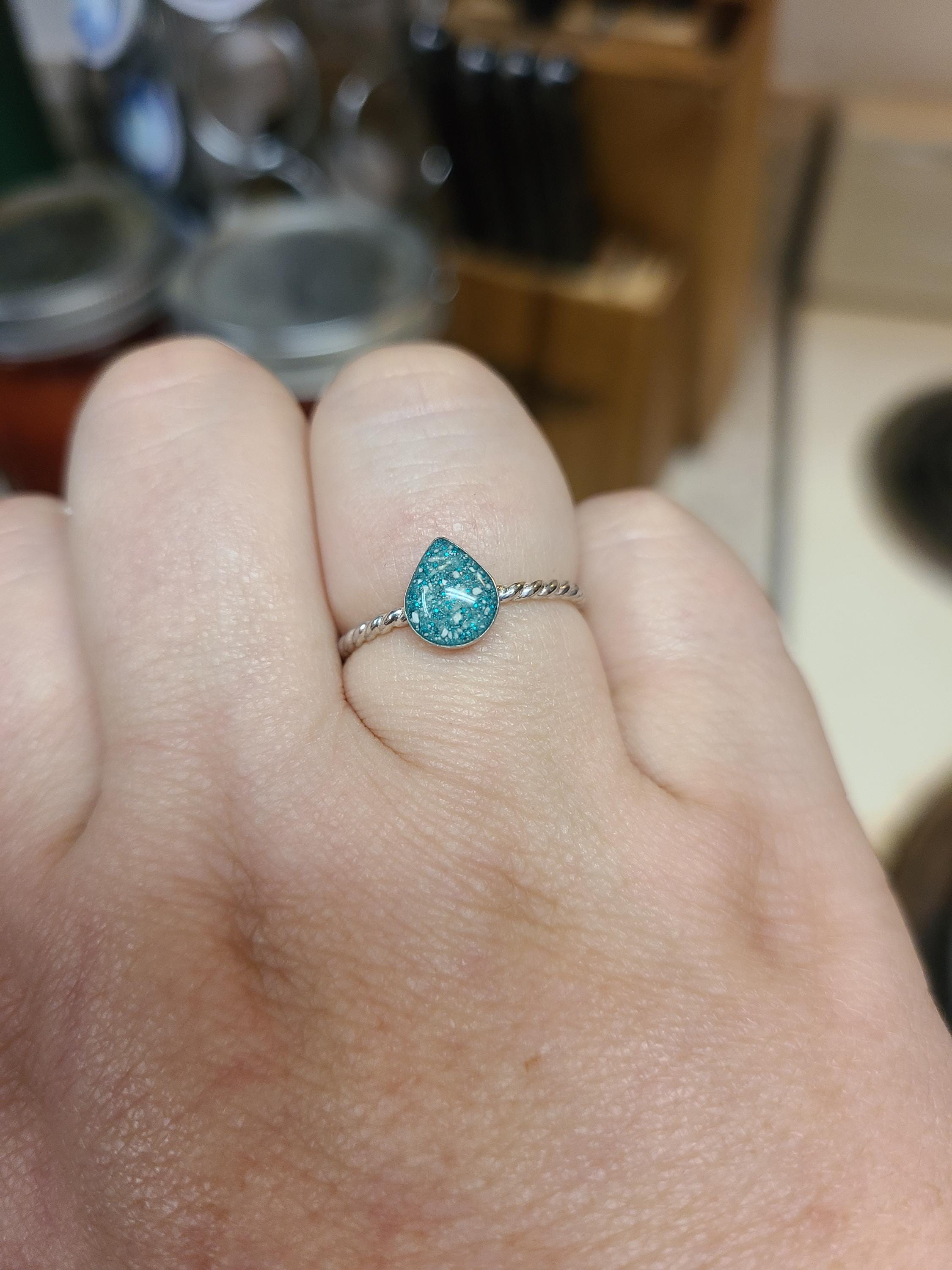 All of my keepsakes pieces are made using a jewelry grade resin and the inclusions that you mail to me. (All inclusions must be mailed to me, they cannot be added in after the stone is made.) Anything left over is mailed back to you with your jewelry.