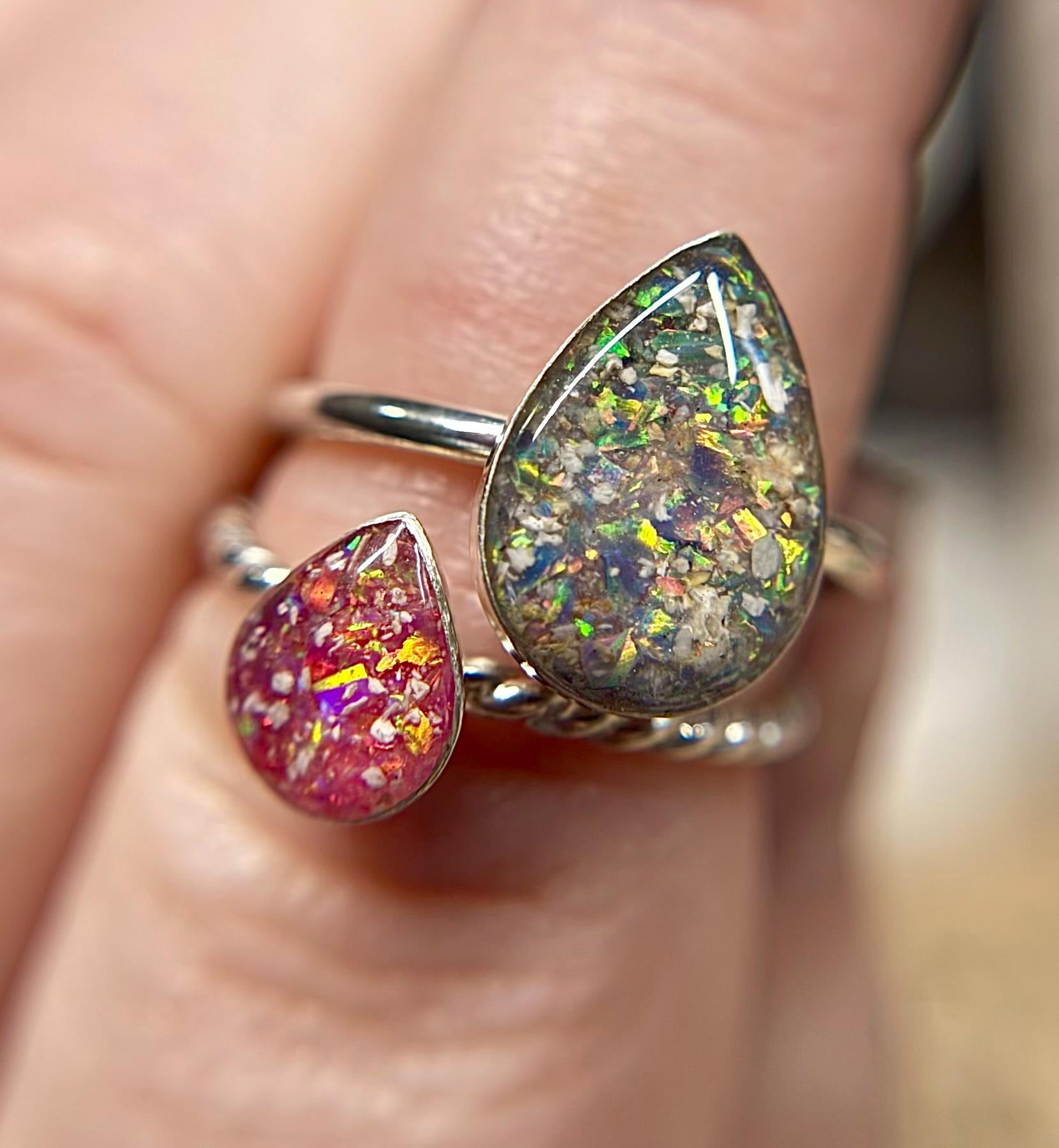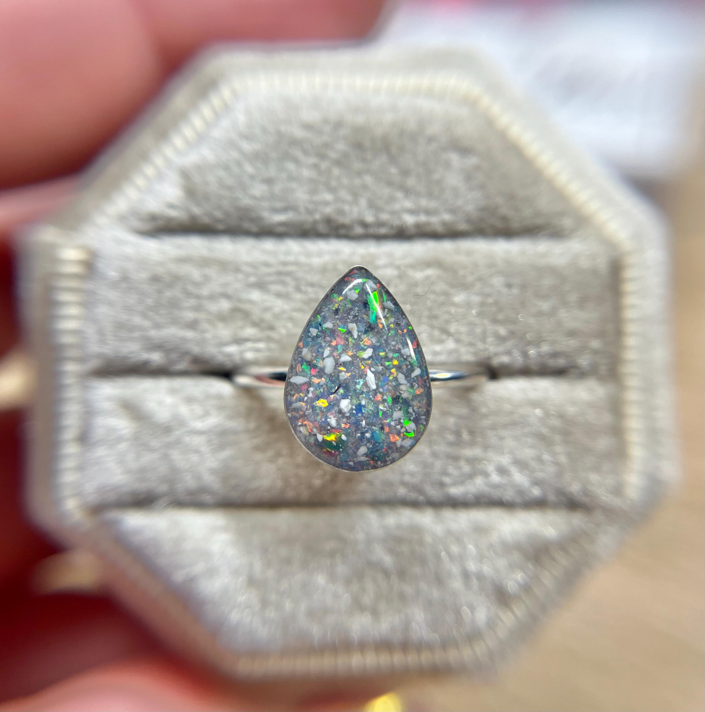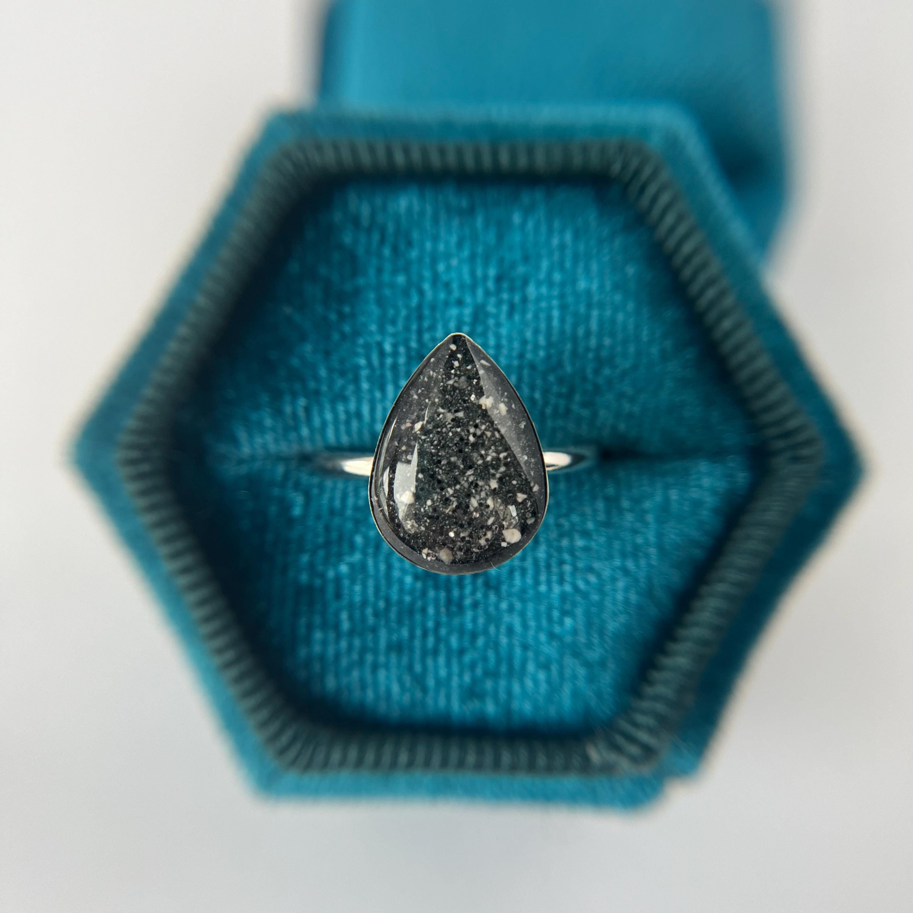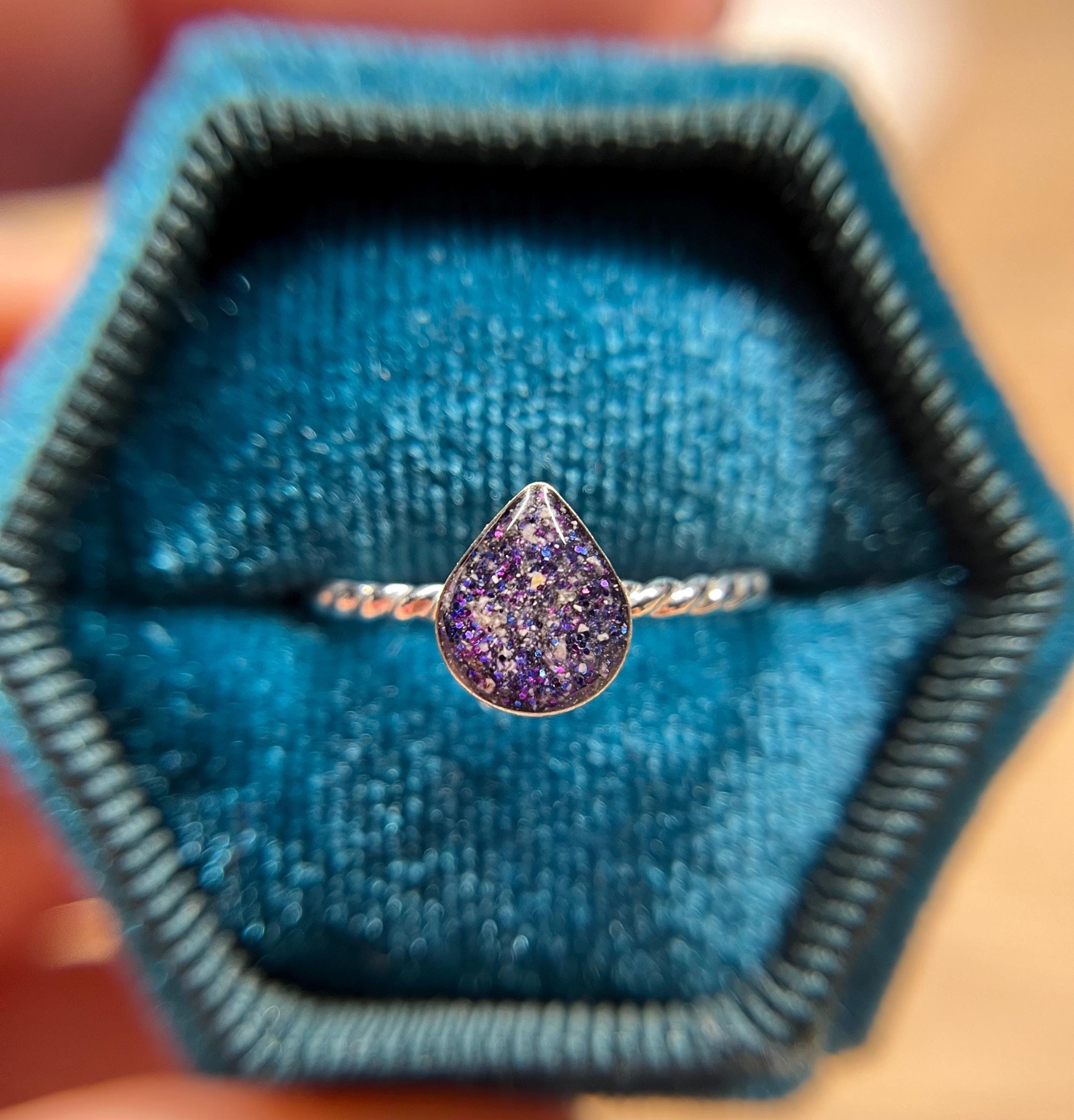 This handmade memorial ring is created using your pets ashes, fur, whiskers or other inclusions. Each piece is thoughtfully crafted with care, shaped slowly and intentionally, and made to be completely one of a kind. No two rings are ever the same — each one reflects the unique story and connection it’s meant to honor.