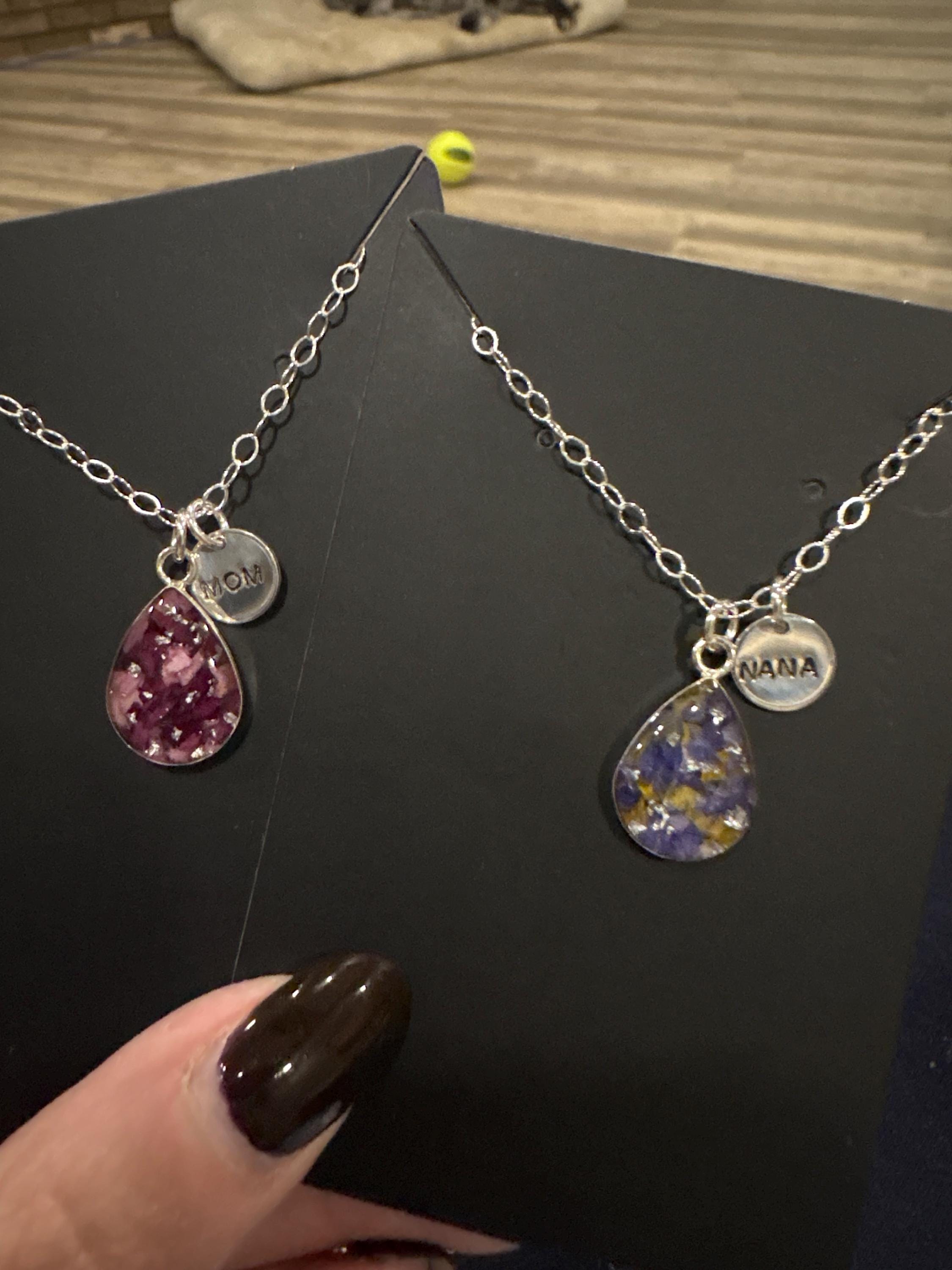 The flowers must be completely dried before mailing them. I only need a couple petals from each flower you'd like used in the jewelry. You can put the petals in a folded piece of paper and place them in a regular mailing envelope. Where to send them will be sent with your confirmation email once you place an order.