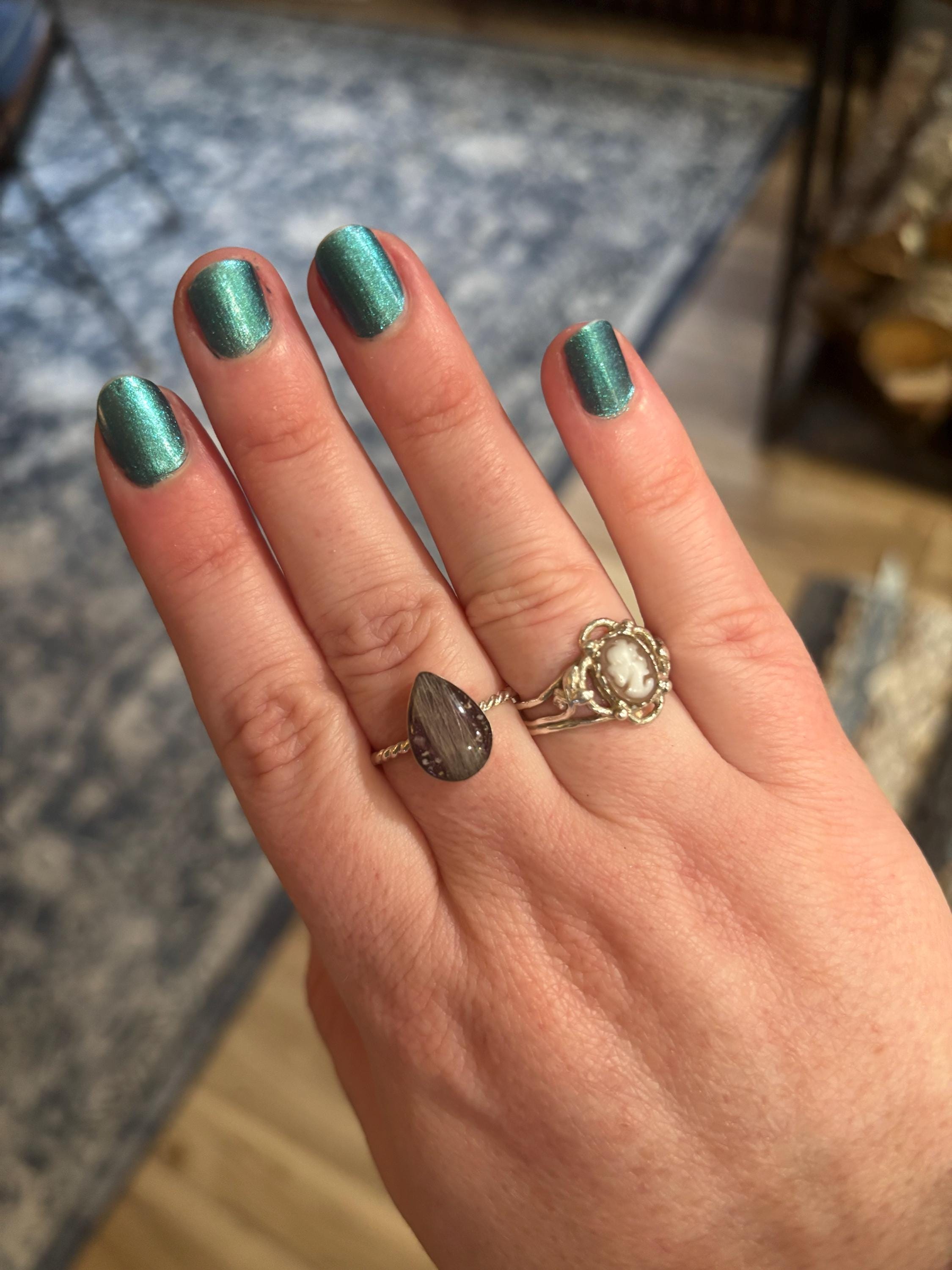 I LOVE this ring! Tara crafted such a beautiful piece of jewelry made from dog hair from my Lily girl, the love of my life, who is alive and well and I wanted something just to hold her close to me all the time. I wear it almost every day. It is gorgeously crafted and shines in the sun with its sparkles. And it fits great around my finger and is easy to put on and remove. I would highly recommend ordering a pet keepsake ring like this to honor your pet, as it such a lovely ring.